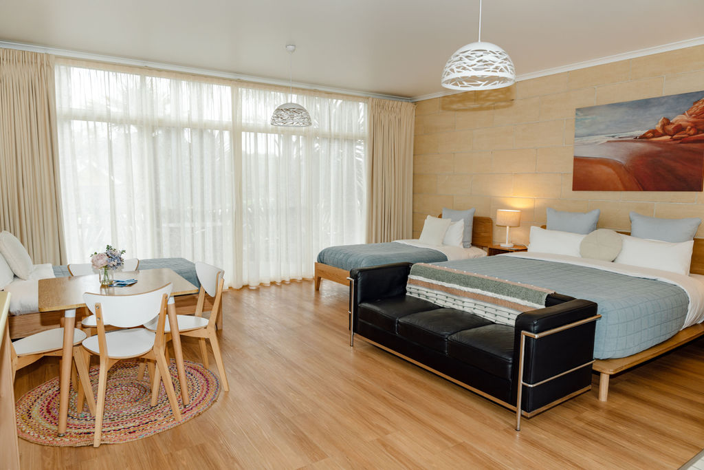 Our motel has all King size beds and private patios to unwind after a day spent sightseeing. Car parking at your door. Close to beautiful swimming bay and restaurants . Complimentary Barista coffee and hot chocolate from 0800 in reception.